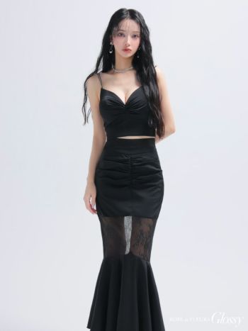 3. 【Glossy by ROBE de FLEURS/グロッシー】キャミソール サテン レース セットアップ マーメイドロングドレス (GL4110)