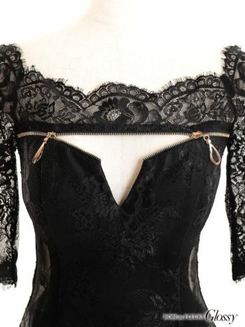 5. 【Glossy by ROBE de FLEURS/グロッシー】オフショル フロント ジッパー 袖あり タイトミニドレス (GL2413)