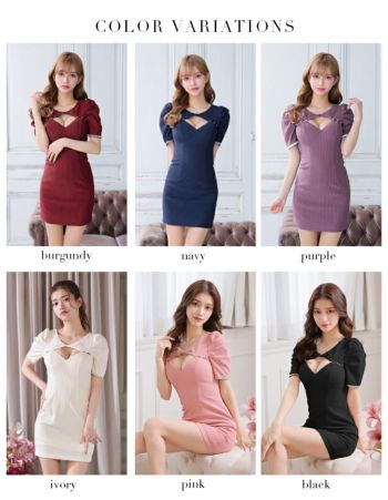 3. 【Glossy by ROBE de FLEURS/グロッシー】袖あり リブニット バストカット パール ワンカラー タイトミニドレス (GL2850)
