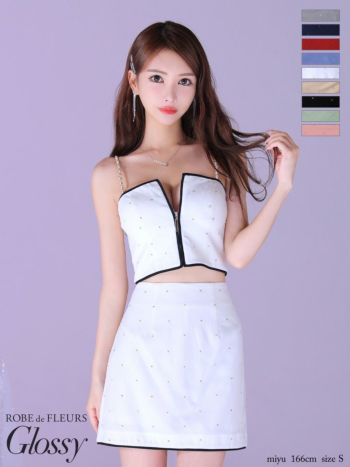4. 【Glossy by ROBE de FLEURS/グロッシー】キャミソール スタッズ キルティング セットアップ フロントジッパー チェーン タイトミニドレス(GL2896)