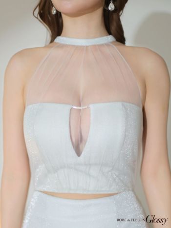 4. 【Glossy by ROBE de FLEURS/グロッシー】ホルターネックチュール フロントシースルー ラメニット セットアップ アメリカンスリーブ タイトミニドレス(GL2897)