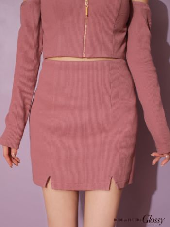 5. 【Glossy by ROBE de FLEURS/グロッシー】バストジップセットアップ肩あきリブニットストレッチタイトミニドレス(GL2995)