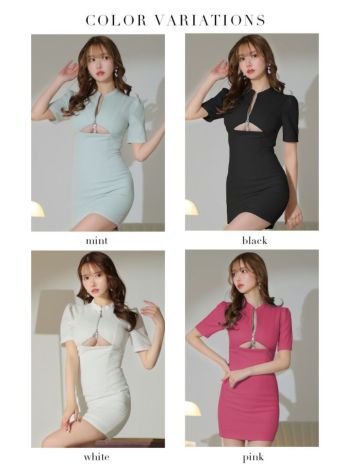 XSあり!ファスナーの開閉で露出具合を調整☆ 【Glossy by ROBE de FLEURS/グロッシー】バストファスナー スプリングツイード ハイネック ハーフスリーブ タイトミニドレス(GL3516)