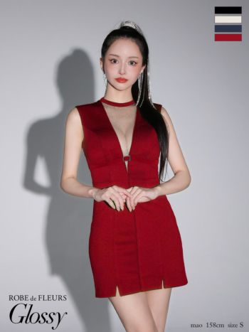 4. 【Glossy by ROBE de FLEURS/グロッシー】ノースリーブ デコルテシースルー ベルトデザイン セクシー オープンバスト タイトミニドレス (GL3556)