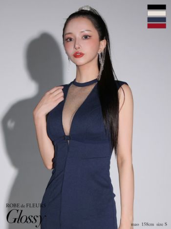 XSあり!高級感があるデザイン☆ 【Glossy by ROBE de FLEURS/グロッシー】デコルテシースルー ベルトデザイン セクシー オープンバスト ノースリーブ タイトミニドレス (GL3556)