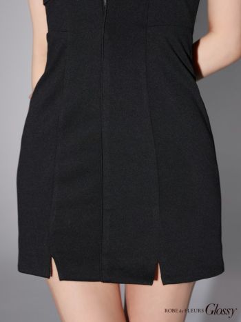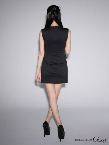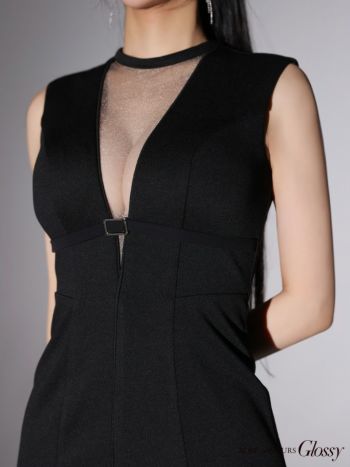4. 【Glossy by ROBE de FLEURS/グロッシー】デコルテシースルー ベルトデザイン セクシー オープンバスト ノースリーブ タイトミニドレス (GL3556)