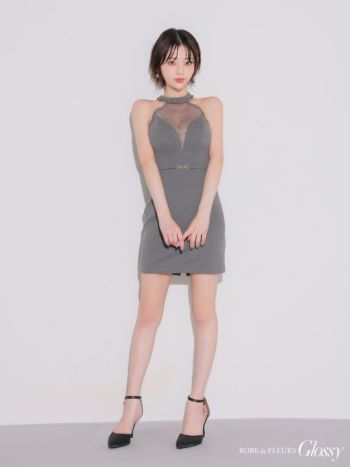 キャバドレス Glossy ROBE de FLEURS グロッシー ローブドフルール ウエストベルト チュールシアー ワッフル セクシー ホルターネック タイトミニドレス