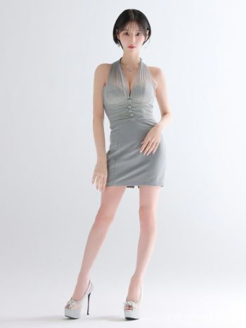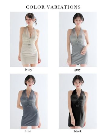 4. 【Glossy by ROBE de FLEURS/グロッシー】セクシー ウエストベルト ホルターネック ラメ チュール ギャザー タイトミニドレス (GL3950)