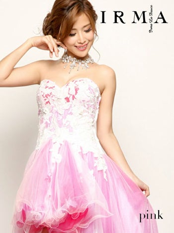 気品に満ちた女性へ導くキャバドレス♪ 【IRMA/イルマ】背中 スピンドルベアロングテールドレス[ピンク]