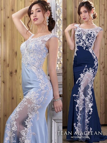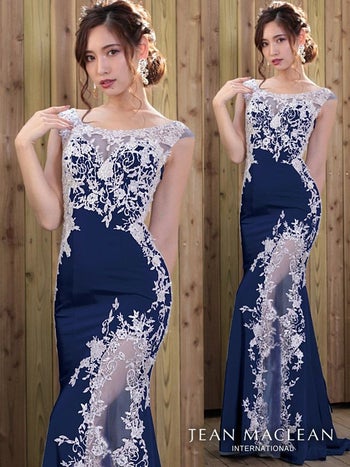 キャバドレス JEANMACLEAN ジャンマクレーン 91416 デコルテ&スリットシースルーレースデザインロングドレス(2color)(Mサイズ)[送料無料]