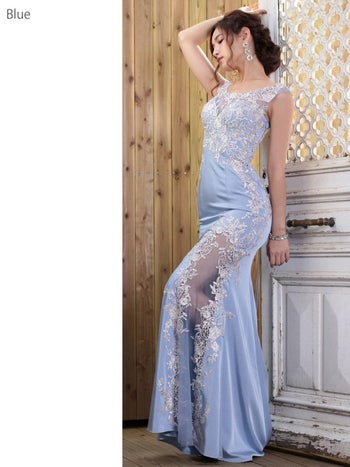 シアーレースx刺繍がボディラインを美しく魅せるワンカラーロングドレス。