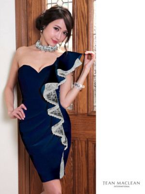 LaLaTulleが選ぶ優雅さ溢れる大人の女性へ格上げするキャバドレス♪ 【JEANMACLEAN/ジャンマクレーン】フリル ワンショルダー タイトミニドレス[ネイビー]