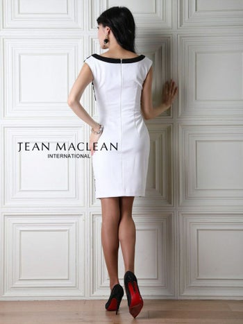 4. 【JEANMACLEAN/ジャンマクレーン】タック×フラワーレース刺繍 バイカラー タイトミニドレス[アイボリー]