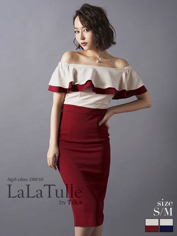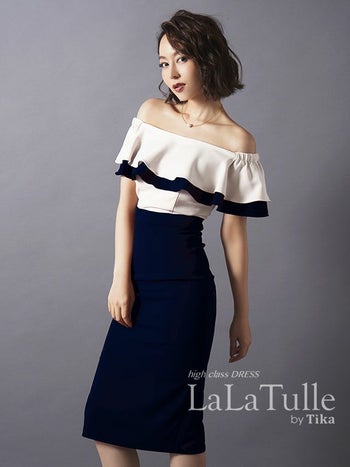キャバドレス LaLatulle ララチュール 2段フリルレースバイカラータイトミニドレス(2color)(S/M)(青田夏奈 着用)【送料無料】