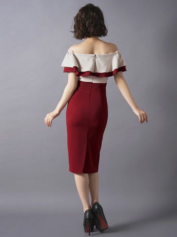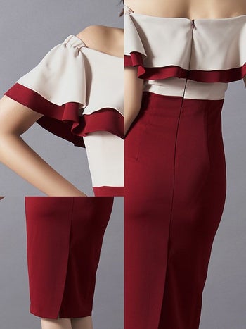 4. 2段 フリルレース バイカラー タイトミニドレス[2color][青田夏奈/キャバドレス着用]