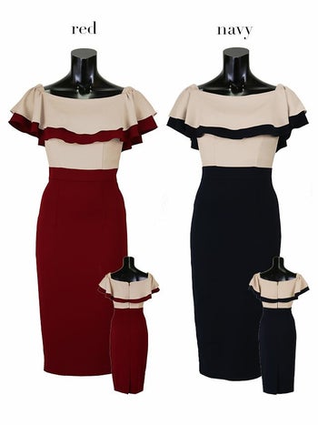 高品質な大人綺麗なキャバドレス♪ 2段 フリルレース バイカラー タイトミニドレス[2color][青田夏奈/キャバドレス着用]