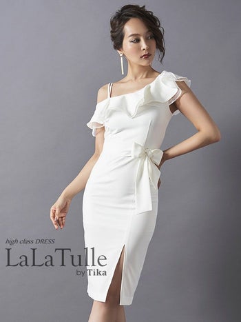 キャバドレス LaLatulle ララチュール ワンカラー フリルショルダーミディドレス(ホワイト)(S/M/L)(青田夏奈 着用)【送料無料】