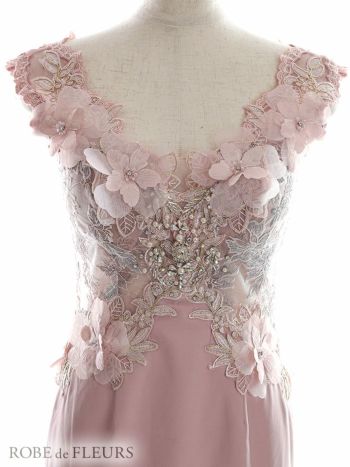 XSあり!胸元の立体フラワーモチーフが目を惹く♪ 【ROBEdeFLEURS/ローブドフルール】ノースリーブ 立体フラワーモチーフ チュール ストレッチ タイトミニドレス(fm2601)