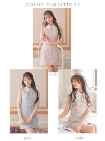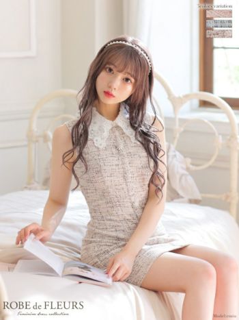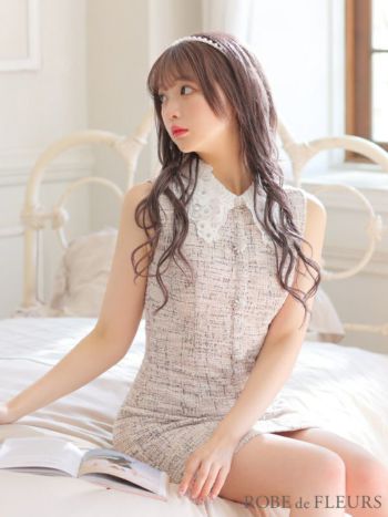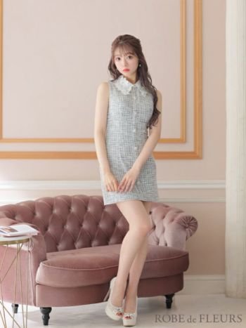 XS~Lあり!ガーリーさが詰め込まれた一着☆ 【ROBEdeFLEURS/ローブドフルール】ノースリーブニット襟付きツイード タイトミニドレス (fm3218)