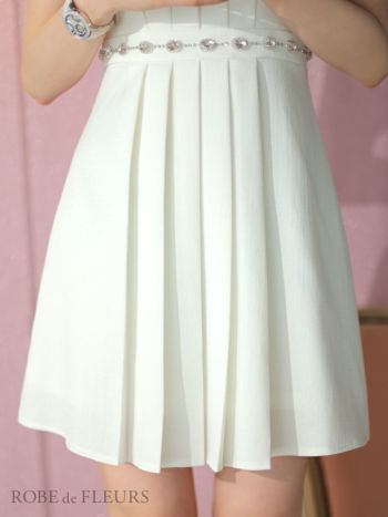 3. 【ROBEdeFLEURS/ローブドフルール】ガーリー キラキラ クリスタル ビジュー スプリングツイード ノースリーブ フレアミニドレス(fm3322)
