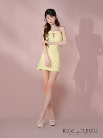 キャバドレス ROBEdeFLEURS ローブドフルール キャミソール ガーリー セットアップ バストリボン ストーン タイトミニドレス