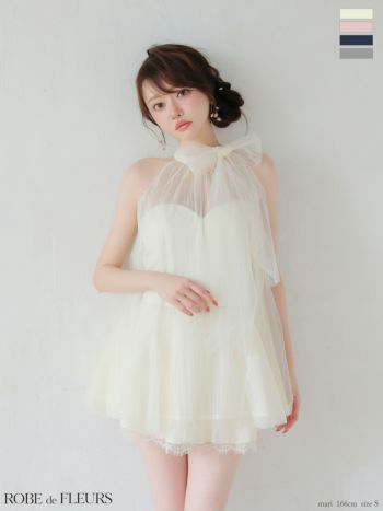 キャバドレス ROBEdeFLEURS ローブドフルール ホルターネック リボン ベルト チュール セットアップ ガーリー フレアミニドレス