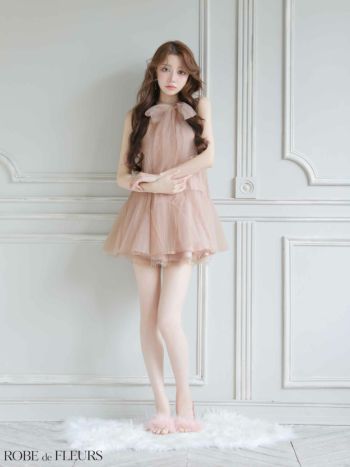 4. 【ROBEdeFLEURS/ローブドフルール】ホルターネック リボン ベルト チュール セットアップ ガーリー フレアミニドレス (fm3486)