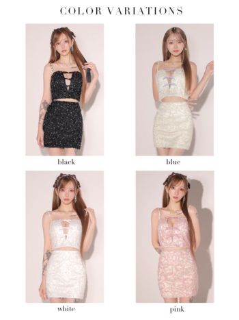 キャバドレス ブランド ガーリー オープンバスト キャミソール フェザーレース ミニリボン セットアップ タイトミニドレス