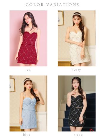 キャバドレス ブランド オープンバスト キャミソール セットアップ ガーリー ビジュー ツイード サテンリボン タイトミニドレス