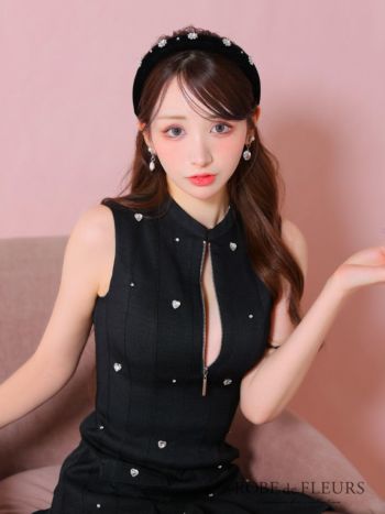 3. 【ROBEdeFLEURS/ローブドフルール】ハートビジュー プリーツ ガーリー オープンバスト ジップデザイン ノースリーブ フレアミニドレス (fm3782)