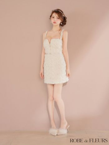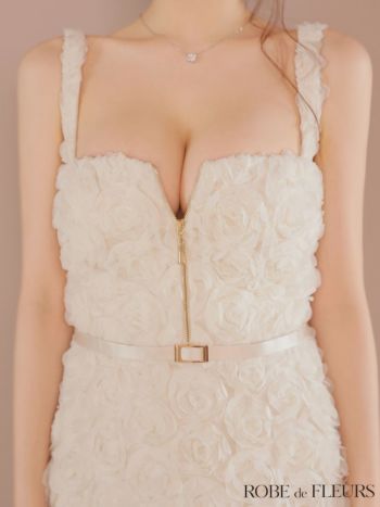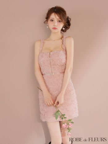キャバドレス ROBEdeFLEURS ローブドフルール ジップデザイン ローズレース サテン ノースリーブ ガーリー タイトミニドレス