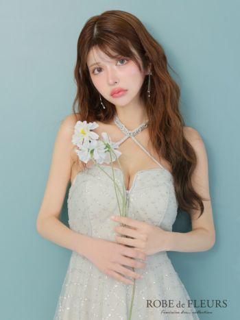 キャバドレス ROBEdeFLEURS ローブドフルール ラメニット ビジュー ホルターネック チュール ジップデザイン ガーリー フレアミニドレス