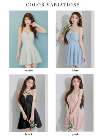 4. 予約商品【1月中旬入荷予定】【ROBEdeFLEURS/ローブドフルール】ラメニット ビジュー ホルターネック チュール ジップデザイン ガーリー フレアミニドレス (fm4313)