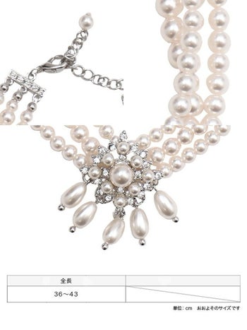 フラワーモチーフビジュー 3連小粒パール ネックレス