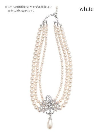 お顔周りを一気に華やかに♪ 【LaLaTulle】お花モチーフ 3連 パール ビジュー ネックレス