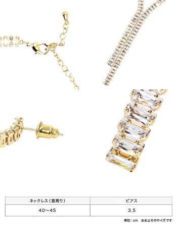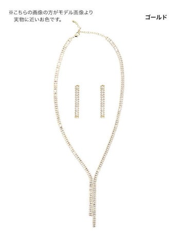 3. 【LaLaTulle】アシンメトリー ゴールド Yラインビジュー アクセサリー2点セット(ネックレス+ピアス)