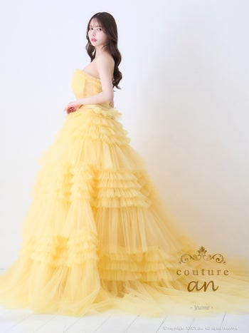 3. 【couture an/クチュール アン】ワンカラー ベアトップ ウエストリボン フリル チュール レースアップ バースデー Aラインロングドレス(aocwd017)