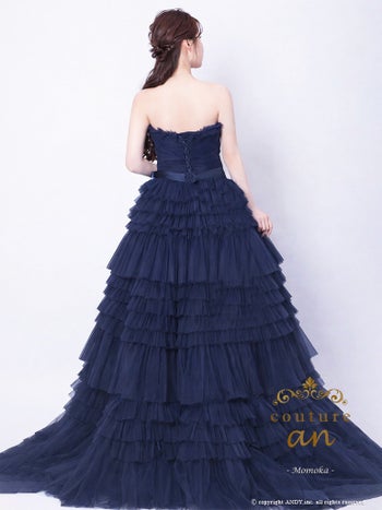 4. 【couture an/クチュール アン】ワンカラー ベアトップ ウエストリボン フリル チュール レースアップ バースデー Aラインロングドレス(aocwd017)