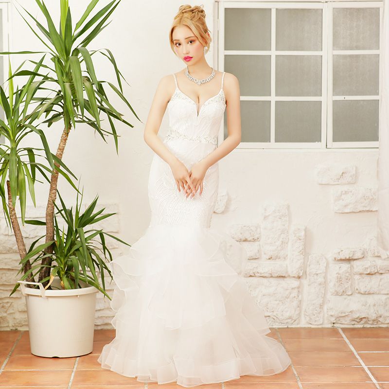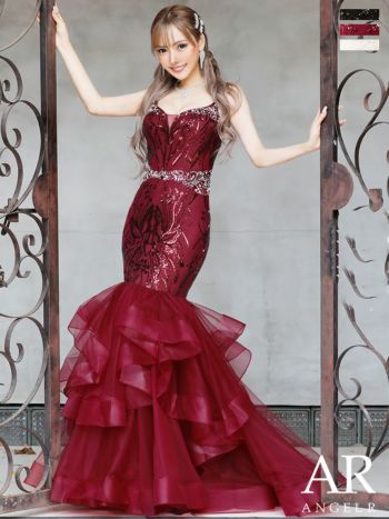 4. 【Angel R PREMIUM/プレミアム】キャミソール ゴージャス マーメイド バスト ウエストビジュー スパンコール レース ロングドレス(AP80204)