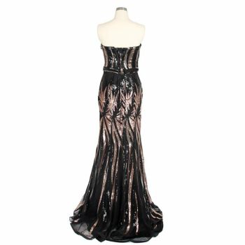 オフショルダー ハートカット総スパンコールタイトロングドレス