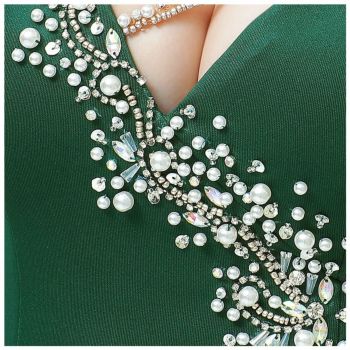 アシンメトリー ラインビジュー サイドスリット タイトロングドレスのイメージ画像9