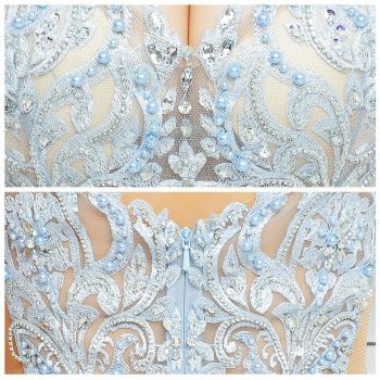 セクシー サイドスリット ビジュー アップフロントレース セクシー ウエストサイドシースルー タイトロングドレス
