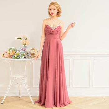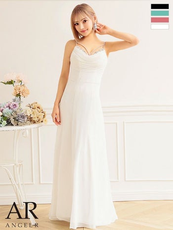 4. 【Angel R/エンジェルアール】エレガント バストビジュー キャミソール シフォンドレープ Aラインロングドレス (AR24218)
