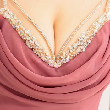 エレガント バストビジュー キャミソール シフォンドレープ Aラインロングドレス