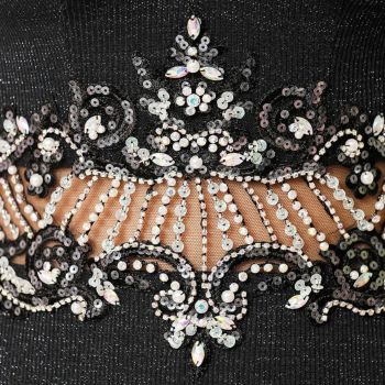 ラメ 刺繍レース バストウエスト ビジュー キャミソール スリット タイトロングドレス