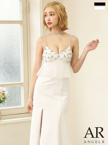 XSあり!上品かつ煌びやかな一着☆ 【Angel R/エンジェルアール】レース ペプラムデザイン キャミソール フラワービジュー Aラインロングドレス (AR24821)