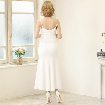 レース ペプラムデザイン キャミソール フラワービジュー Aラインロングドレスのイメージ画像2