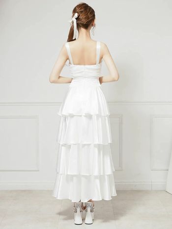 4. 【Angel R/エンジェルアール】リボン フリル ノースリーブ シャーリング ティアード フレアロングドレス(AR25841)