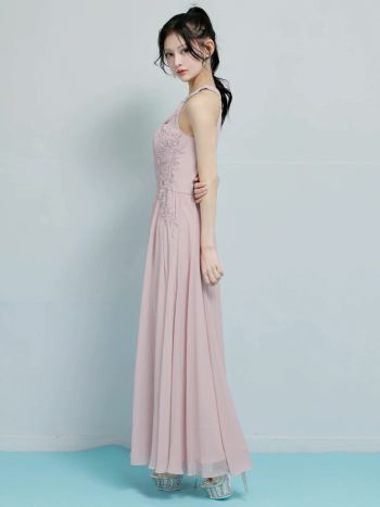 大人エレガントな一着♪ 【Angel R/エンジェルアール】ホルターネック プリーツ リボン フラワーレース ビジュー Aラインロングドレス (AR26807)