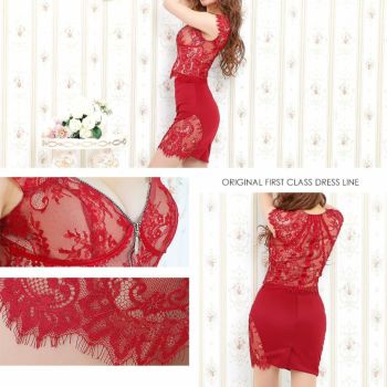 4. 【Angel R/エンジェルアール】バストチェーンビジュー フロントジッパー エレガント レース セットアップ 袖あり タイトミニドレス(AR20342)